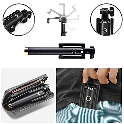 Easy to Use:With built-in Bluetooth remote control & great battery, allows you to take a self-photograph or group photos easily with a better photo sight.No more losing a remote - Bluetooth triggers remote shutter by pressing button.Just need to turn it on, pair your Phone and shoot away.270-degree adjustable head ensure you to find a best & beautiful angle when selfie photographing.