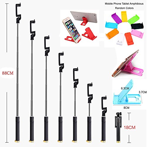 Lots Of Extras Included: Our Selfie Stick comes with a carrying bag,Lets you safely store and easily carry your best selfie stick;With a adjustable collapsible plastic cellphone tablet stands holder(Random multi-Colors),Lets you can adjust the most comfortable angle to enjoy films, TV shows etc.