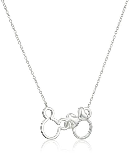 Sterling silver necklace featuring interlocked Minnie and Mickey Mouse pendants
