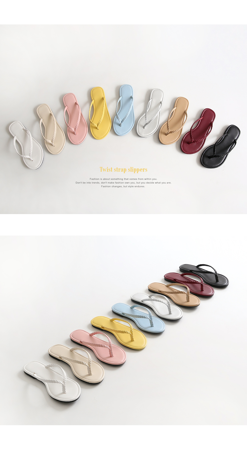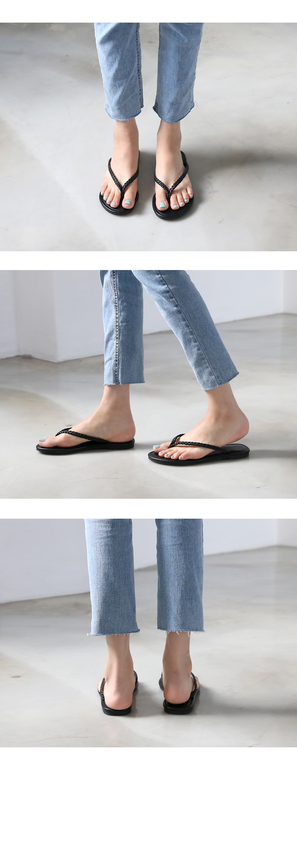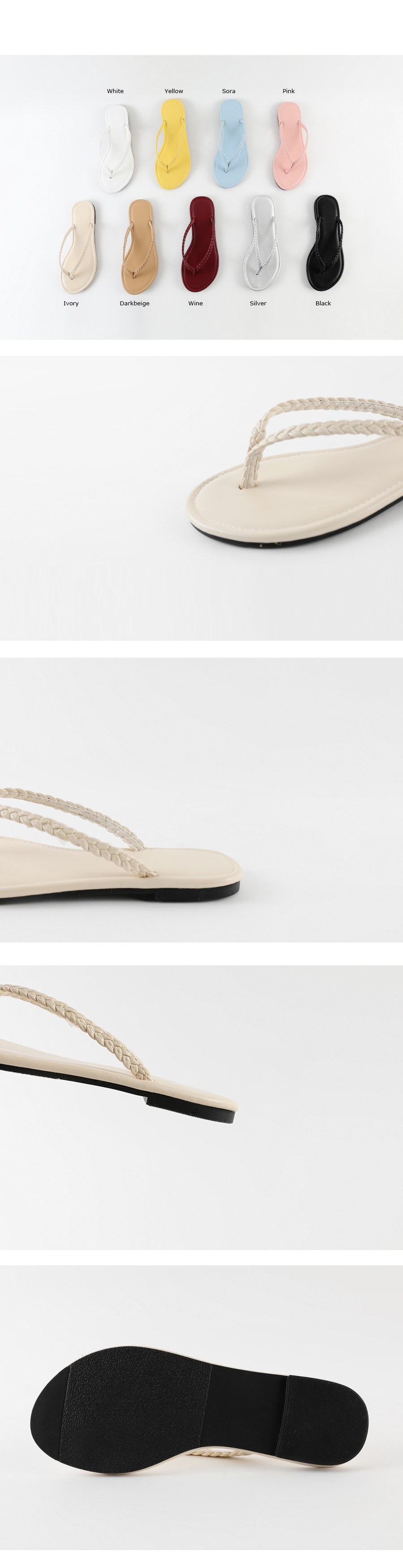 가장 스탠다드한 디자인의 쪼리디자인에 트위스트로 꼬아진 스트랩이 소소한 디테일이 되어줍니다.