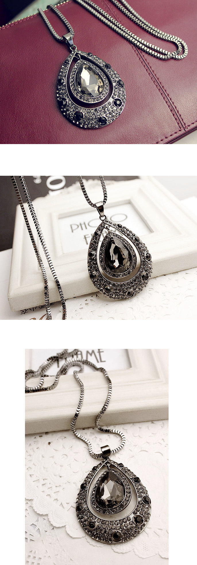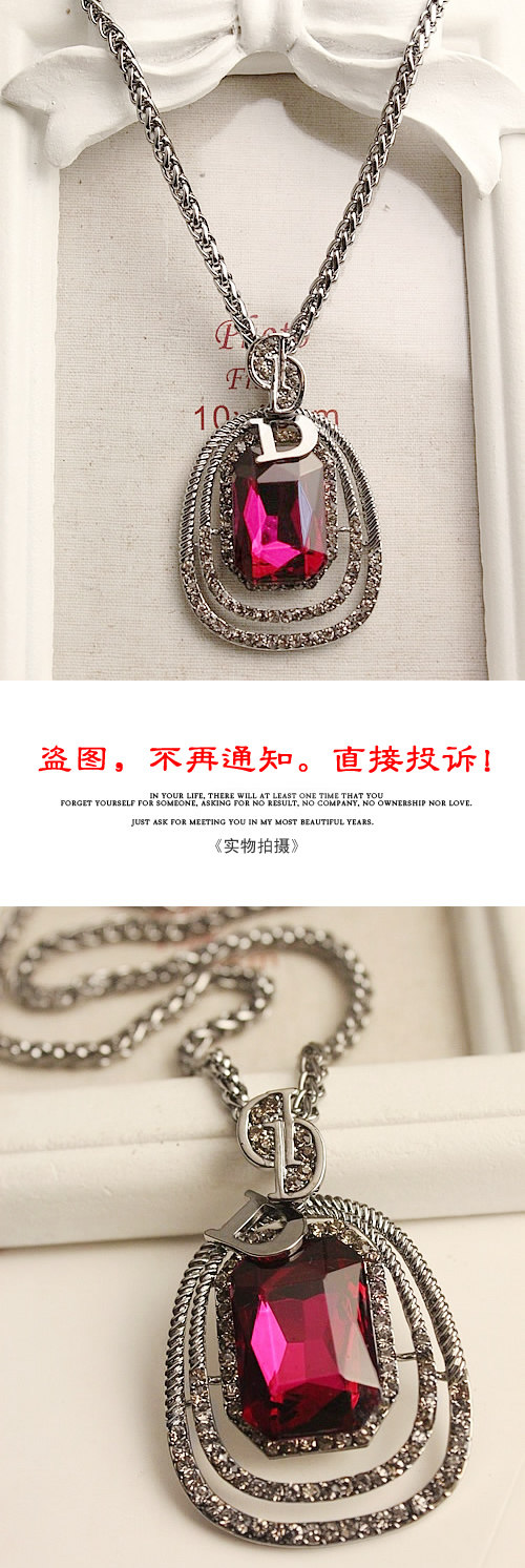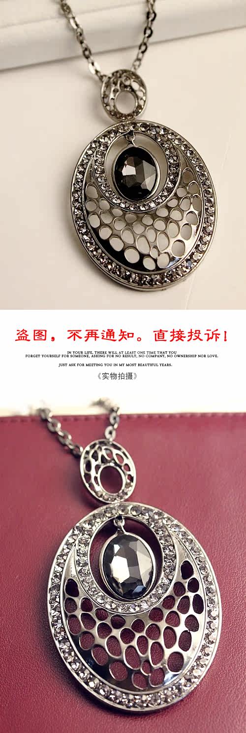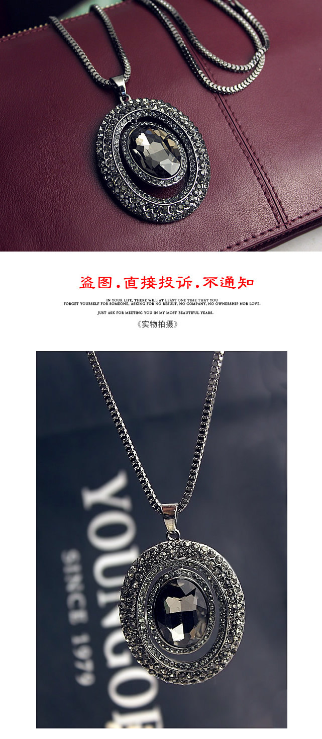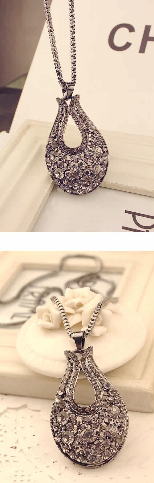 Alloys. Inlaid rhinestones. Chain length 72 cm or so.