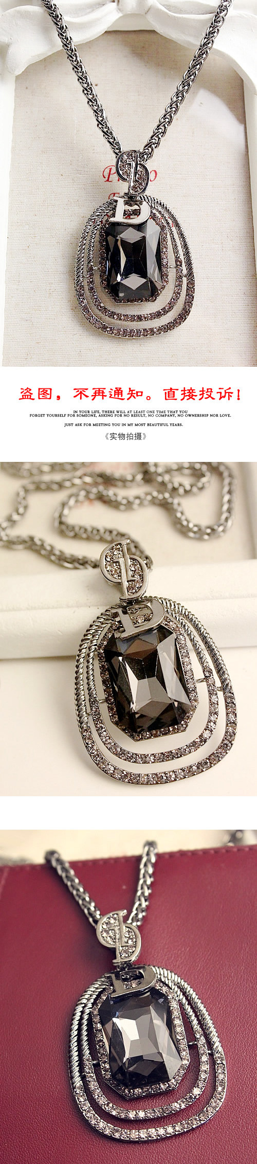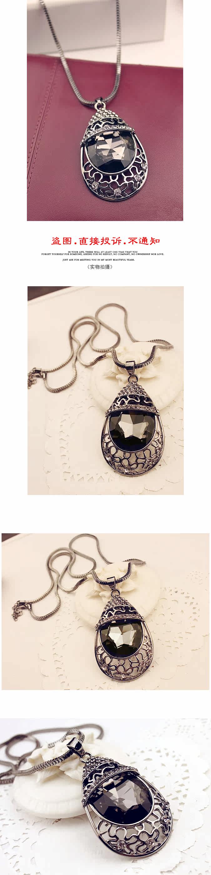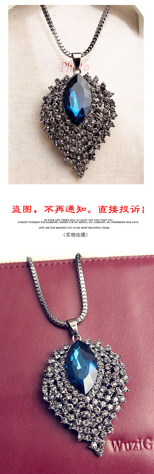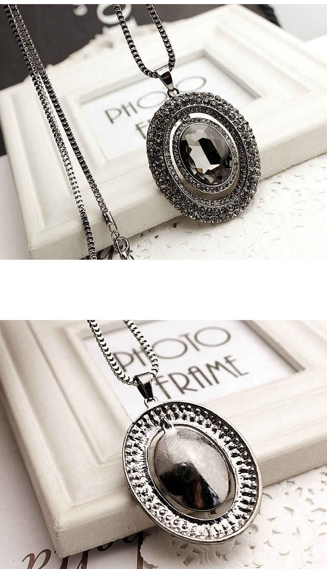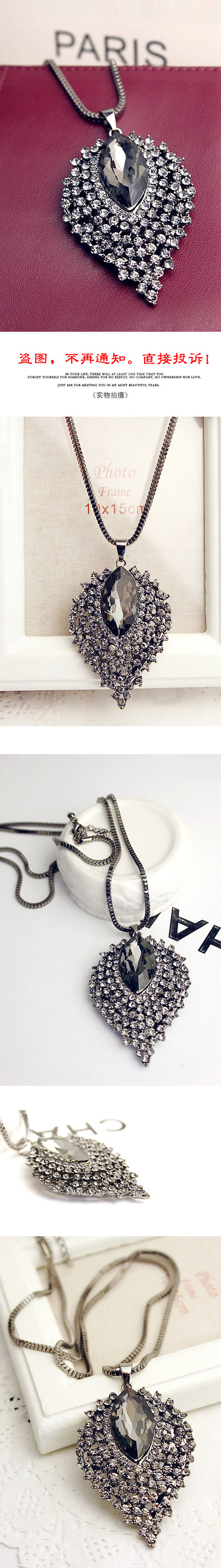 Alloys. Inlaid rhinestones. Chain length 72 cm or so.