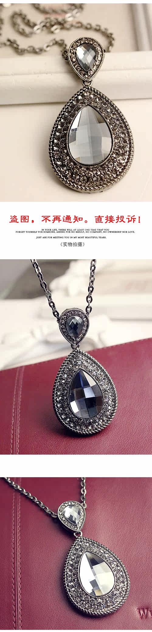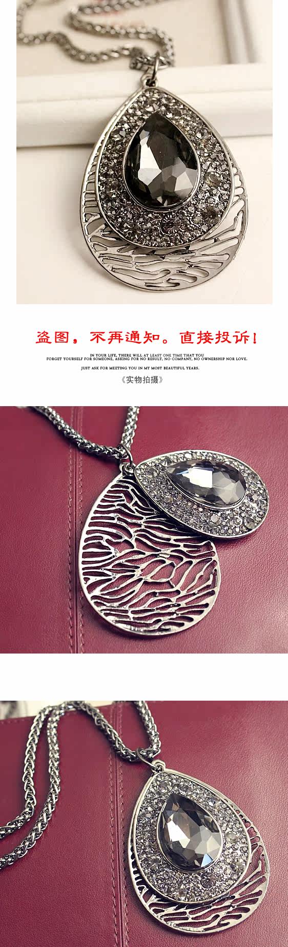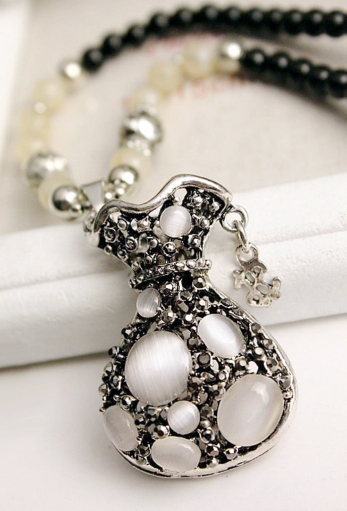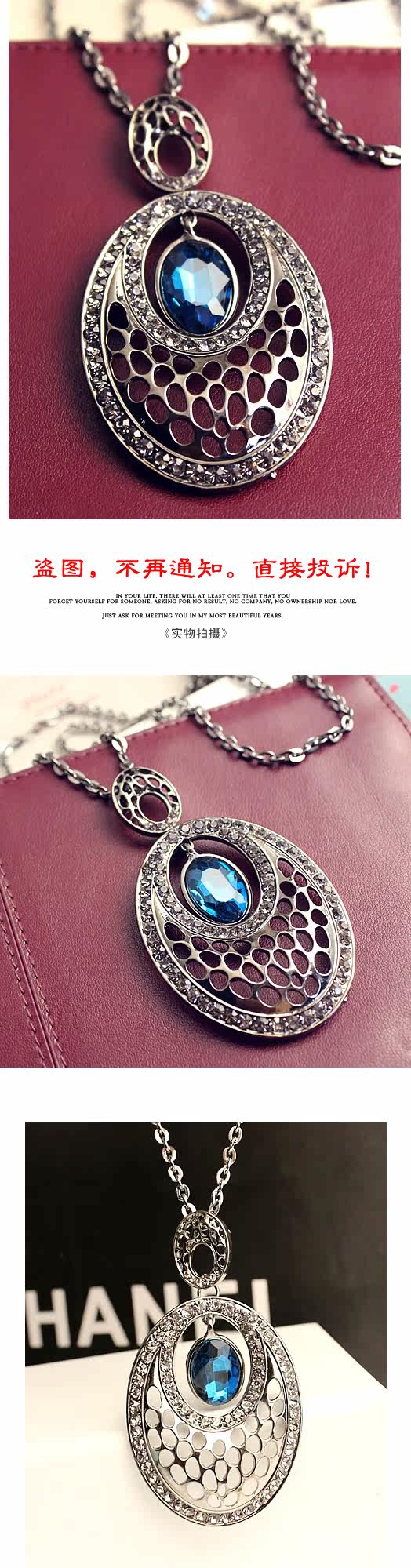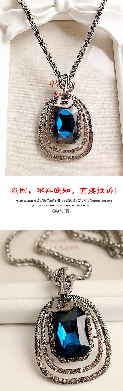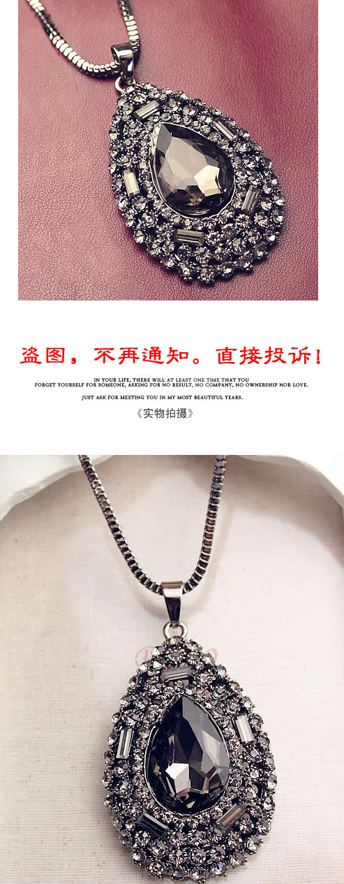 Alloys. Inlaid rhinestones. Chain length 72 cm or so.
