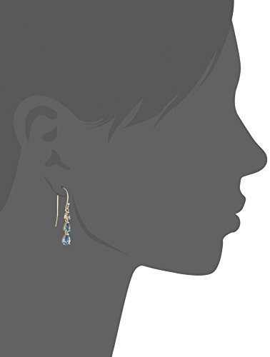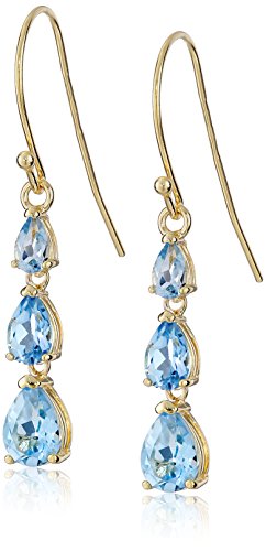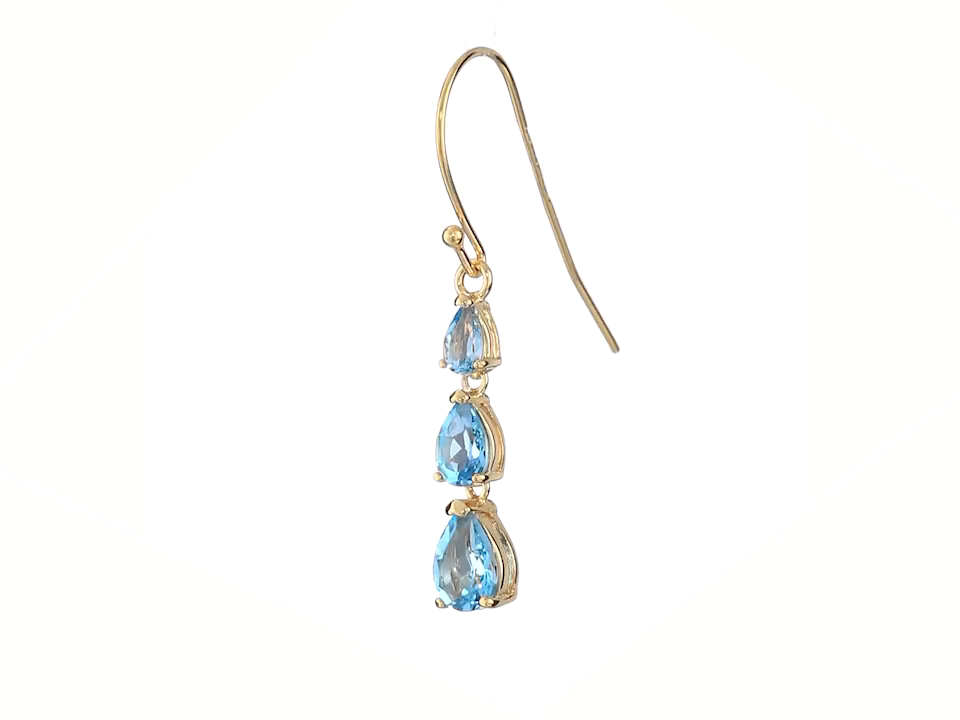 18k Gold Plated Sterling Silver Pear Baby Swiss Blue Topaz Linear Dangle Earrings
