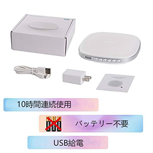 【包装】ホワイトノイズマシン本体、ACアダプター、USBケーブル、日本語説明書が含みます。