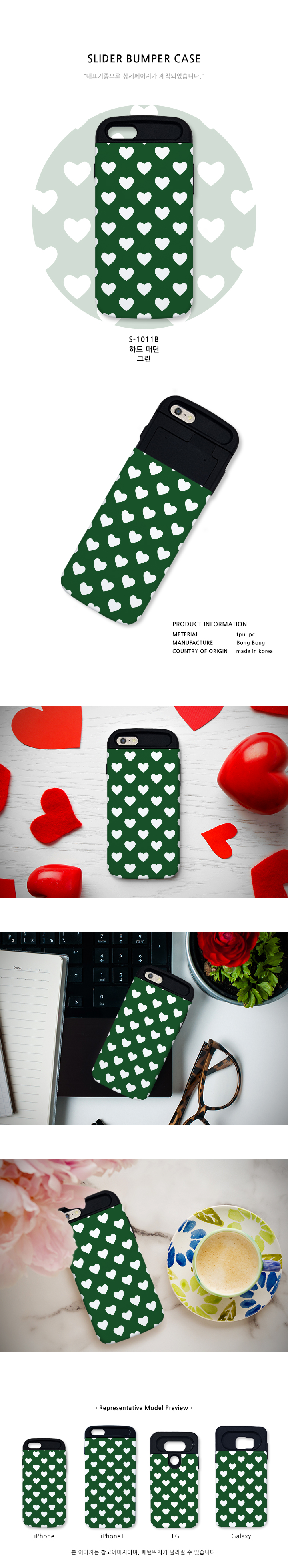 iphone7+ heart Pattern green S1011B slider case