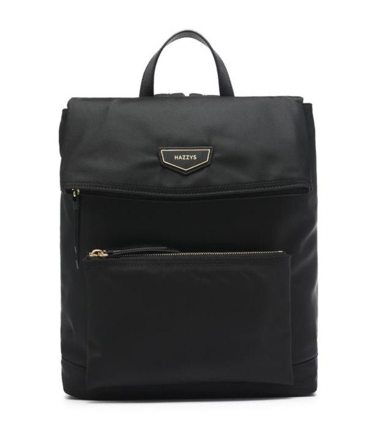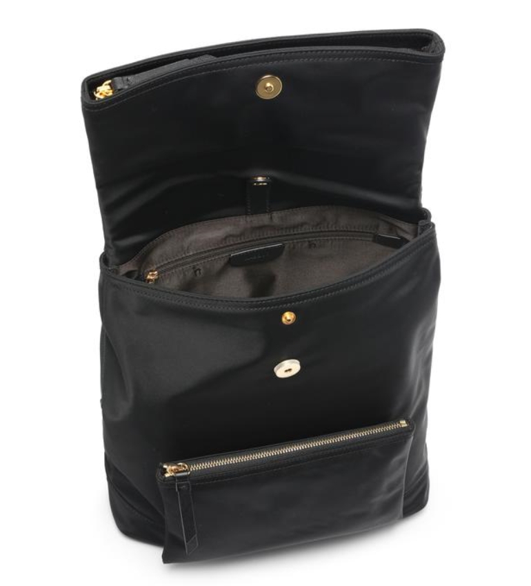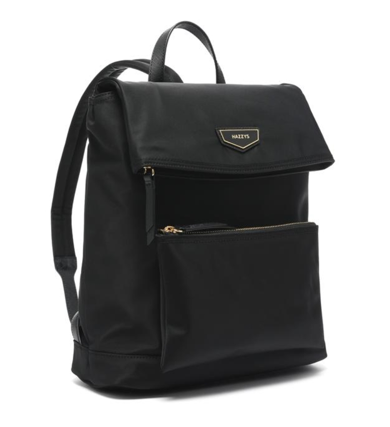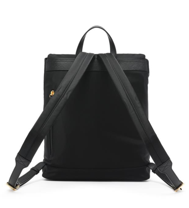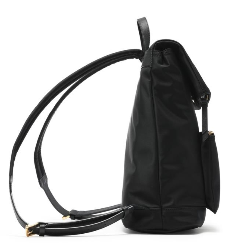 가죽을 배색하고 상단에 오각형의 로고 장식을 매치하여 포인트를 준 백팩입니다