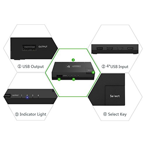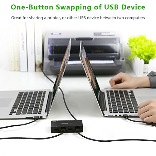 USB sharing Hub provides easy one-touch switching of a USB device or hub between four computers. Important note: For better data transfer, pls keep the USB Cables(connected to the input and output devices) Length less than 3M.