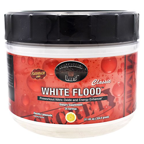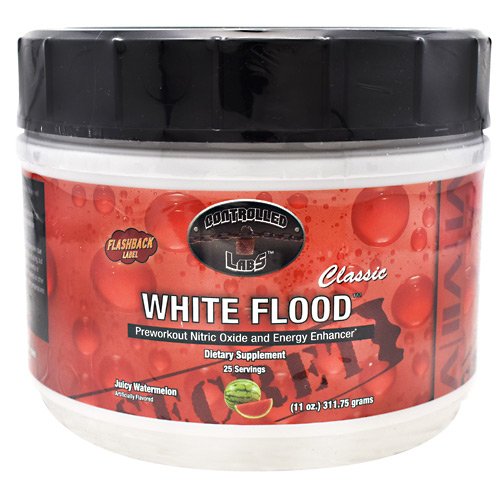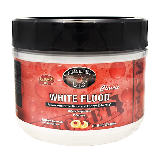 Pre-workout Nitric Oxide and Energy Enhancer. Directions: Initial (First Serving) Instructions: To assess your individual tolerance to the supplement, combine ½ scoop of White Flood Classic with 5 oz. of cold water and consume it before your workout. Shake well before drinking. If you experience any unusual occurrence, stop and consult your doctor. Directions for Usage: Combine 1 serving of White Flood Classic with 8-10 oz. of cold water (you may adjust the amount of water used based on your particular flavor concentration desire) and consume it 30 minutes pre-workout. For best results, White Flood Classic should be used in conjunction with other Controlled Labs products, with adequate liquid/water per day, and a sensible diet. Ingredients: Citric Acid, Natural Flavor, Calcium Silicate, Silicon Dioxide, Sucralose, Acesulfame Potassium Warnings: Allergen Warning: Manufactured on equipment which processes products containing milk, egg, wheat, soybeans, shellfish, fish oil, tree nuts, and peanuts. Warnings: Do not exceed 1 servings per day. It is normal for this product to have small orange or red particles. This supplement may cause a temporary shortness of breath due to the GABA ingredient and tingling skin due to the Beta Alanine ingredient; these are normal occurrences. Before ingesting this product you should consult your doctor if you are not aware of your current health status or if you have any medical condition including, but not limited to: diabetes, high or low blood pressure, cardiac arrhythmias, stroke, diseases of the heart, kidneys, liver or thyroid gland, anxiety, history of seizures, depression, any psychiatric ailment, pernicious anemia, or other blood disorders, prostate enlargement. This product is intended for adults 18-50 years of age only. WARNING: Do not take this product if you are pregnant or nursing. Do not consume with less than the recommended amount of water or if you are prone to dehydration or are subjected to extremely hot...Feature
