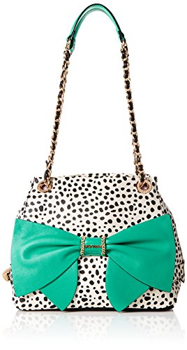 Betsey Johnson Oh Bow You Didn't Top Handle Handbag,Spot White