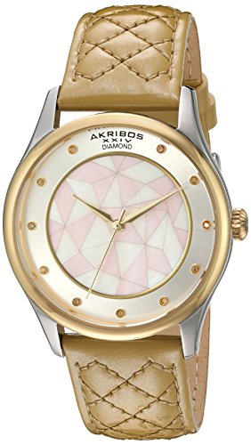 -. Title : Akribos XXIV Women's Quartz Gold-Tone Case with Genuine Diamond Hour Markers and Mother-of-Pearl Mosaic Dial on Gold Quilted Genuine Leather Strap Watch AK925GLD