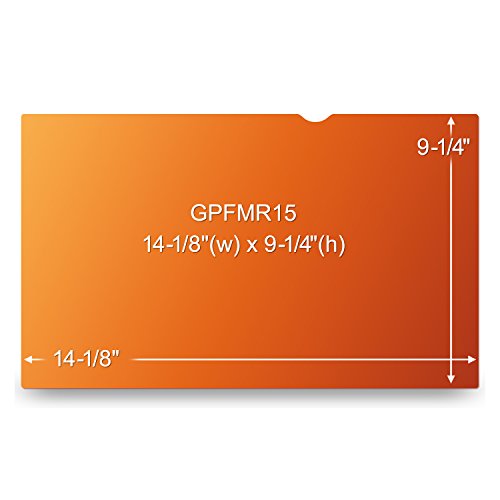- Feature : Keeps your personal or confidential information safe from prying eyes / User sees clearly while people on either side see a vivid golden screen / Custom fit to your Apple MacBook Pro 15-inch with Retina display / The filter application system features an optically clear adhesive designed specifically for display screens. Testing proves that, when kept clean, the filter can be repositioned hundreds of times. / Offers the highest level of clarity within 3M's line of privacy filters / Reversible, privacy filter can be used with either gold or black side facing the user / Lightweight, thin, frameless design / Protects display from dirt, debris and scratches / Cleans easily with a soft cloth and water / Includes a convenient storage folder that keeps your privacy filter clean while not in use on your device / Great for high traffic areas such as airports, airplanes, commuter trains, coffee shops and other public places / Limited 1-year warranty