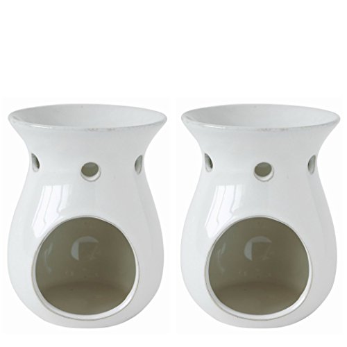 Hosley's Set of 2 White Ceramic Oil Warmer - 5.3" High. Ideal Gift for Wedding, Special Occasion, for Spa and Aromatherapy. Use with HOSLEY Brand Essential Oils and Fragrance Oils. P9