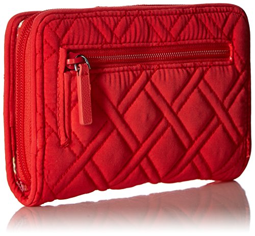 PERFECTLY PLACED POCKETS: Our Vera Vera RFID Turnlock Wallet measures 7.75 x 4.75 inches and features 1 zip exterior pocket with zip main pocket containing 12 card slips, bill pocket, slip pocket for your checkbook, and ID window