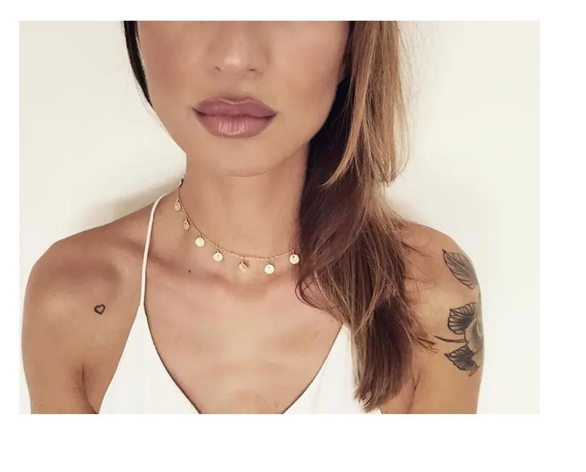 Occassion:Party Gold Chain Choker Necklace Coin Chocker Sequins