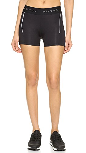 Athletic KORAL ACTIVEWEAR shorts with reflective trim and a side zip pocket. Logo elastic waistband.