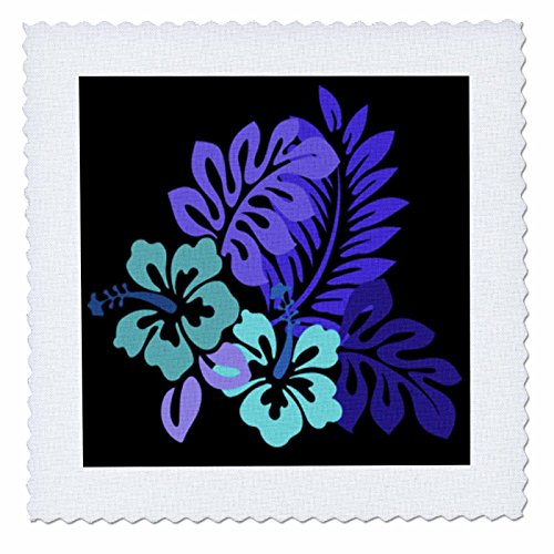 3dRose qs_41667_4 Hawaiian Turquoise and Purple Floral on Black-Quilt Square, 12 by 12-Inch