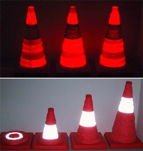 - REFLECTIVE BAND - Near the top of the cone is a silver reflective band that deflects light from headlights, flashlights, phone lights, and more.