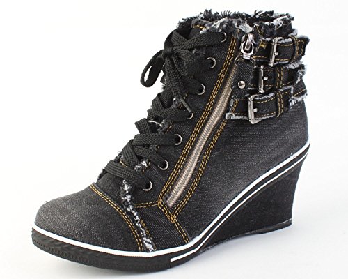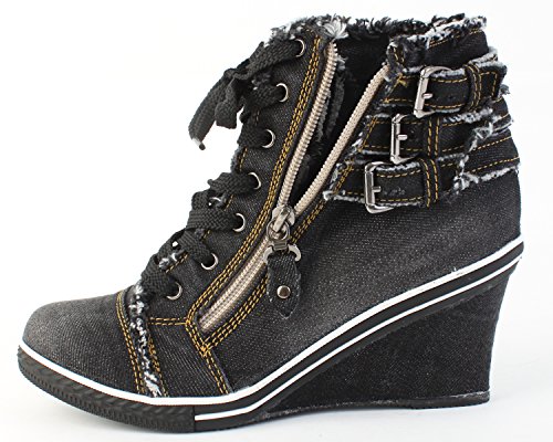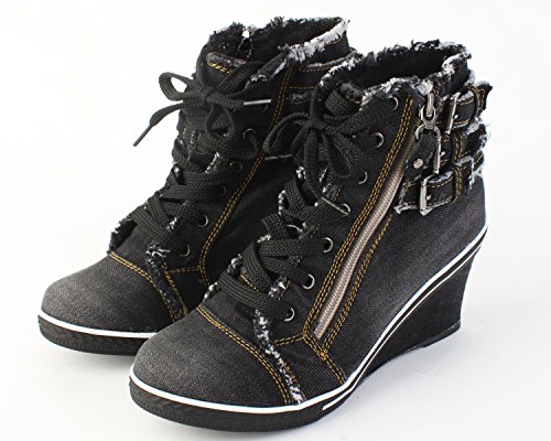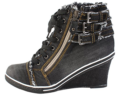 - Title : VOVOshoes LZ2801 Women's Denim Canvas Zipper Wedge Platform Shoes