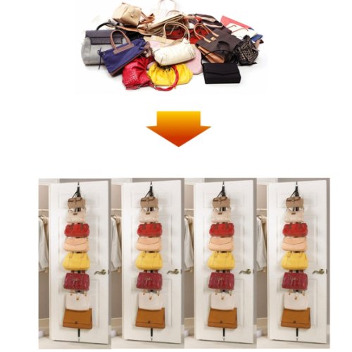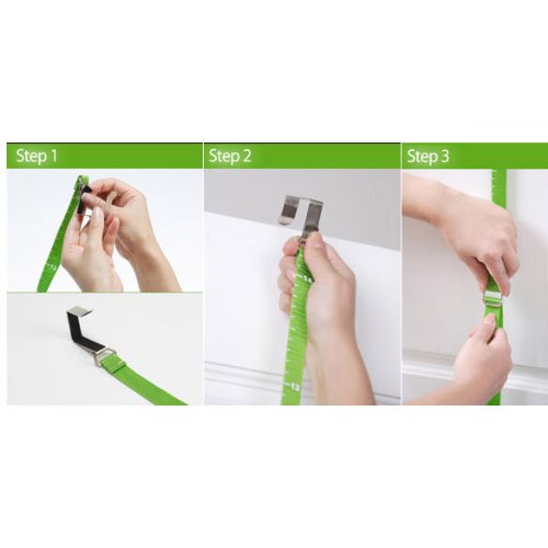 -. Feature : Material: ABS, PVC and stainless steel / Dimension of strap :approx. 180cm / Dimension of stainless hooks: length about 6.5cm / Great ideas to organize bags, hats, coats, pants, towels over door / Hooks can be adjusted up and down