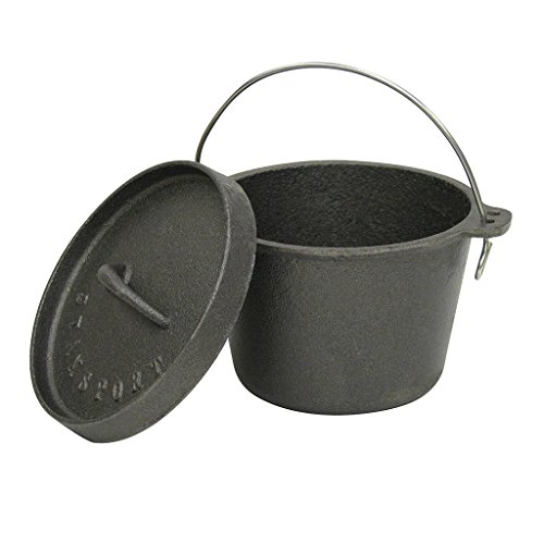 Legless design provides easier placement on cooking grills and adds greater surface to heat contact. Excellent for cooking directly over campfires. Provides greater heat distribution and retention. Keeps food warm for longer period of time. Resistant to chipping and warping. Easy to clean cooking surface. Solid cast iron construction for long lasting durability. 1 quart capacity, 5" diameter.Feature