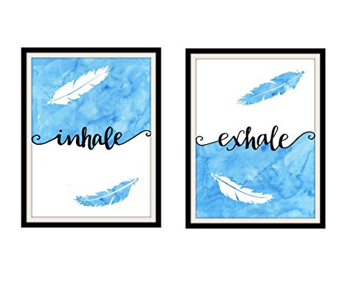 This listing is for a pair (2) of 8x10 inch prints of my original artwork. The prints feature the words "inhale" and "exhale." The words are hand drawn over a watercolor blue background with feathers. This artwork makes a great gift for those who practice meditation, yoga lovers, or a great accent to a serene space. All prints are made using high quality archival matte paper. The print will have approximately 1/2 inch of extra paper on all sides so that you can matte and frame your new art if you choose to. Please note, prints will ship rolled in a tube. The frame is NOT included. I have this artwork available in a variety of hues-- please check out my artisan page for more artwork!