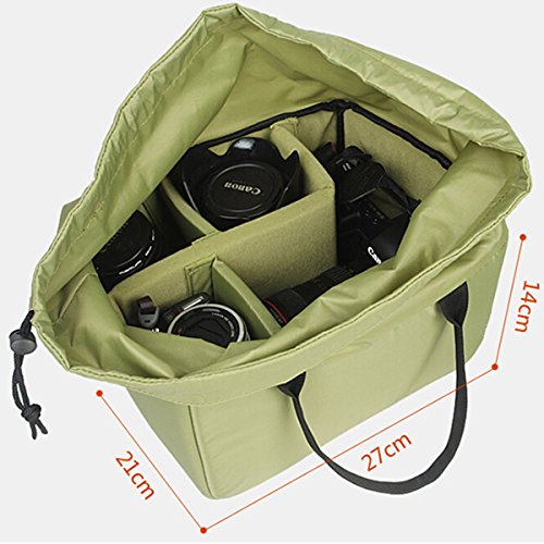 - Feature : Hand strip design defines it multiple use as a handbag and big capacity can store camera lens,flashlight and memory cards. / Color: Green.Material: Nylon.Waterproof: Yes.Dimensions: 27 * 21 * 14cm. / Adoption of nylon material makes it soft, light and waterproof. / It can be put into your backpack bacause of the small dimensions, which is easy to carry. Hand strip design defines it multiple use as a handbag and big capacity can store camera lens,flashlight and memory cards.