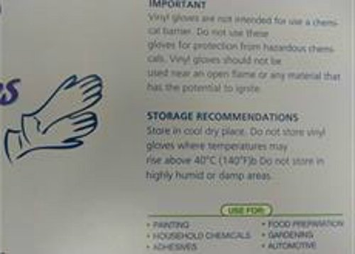 Product Description Medium Size Vinyl Gloves are good for most of Household works, Cleaning, hair coloring, painting, yard working, Automotive works, food preparation. 0