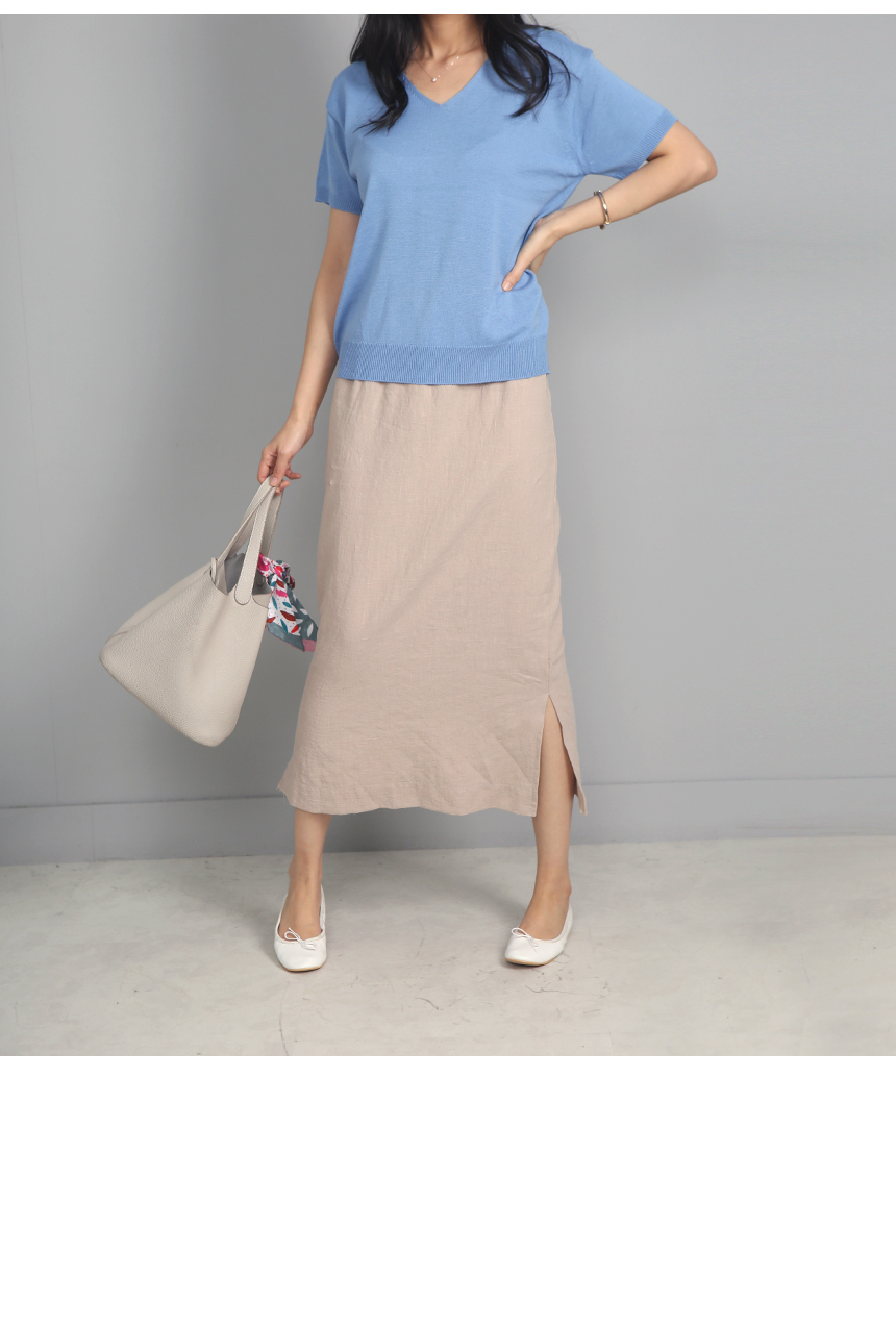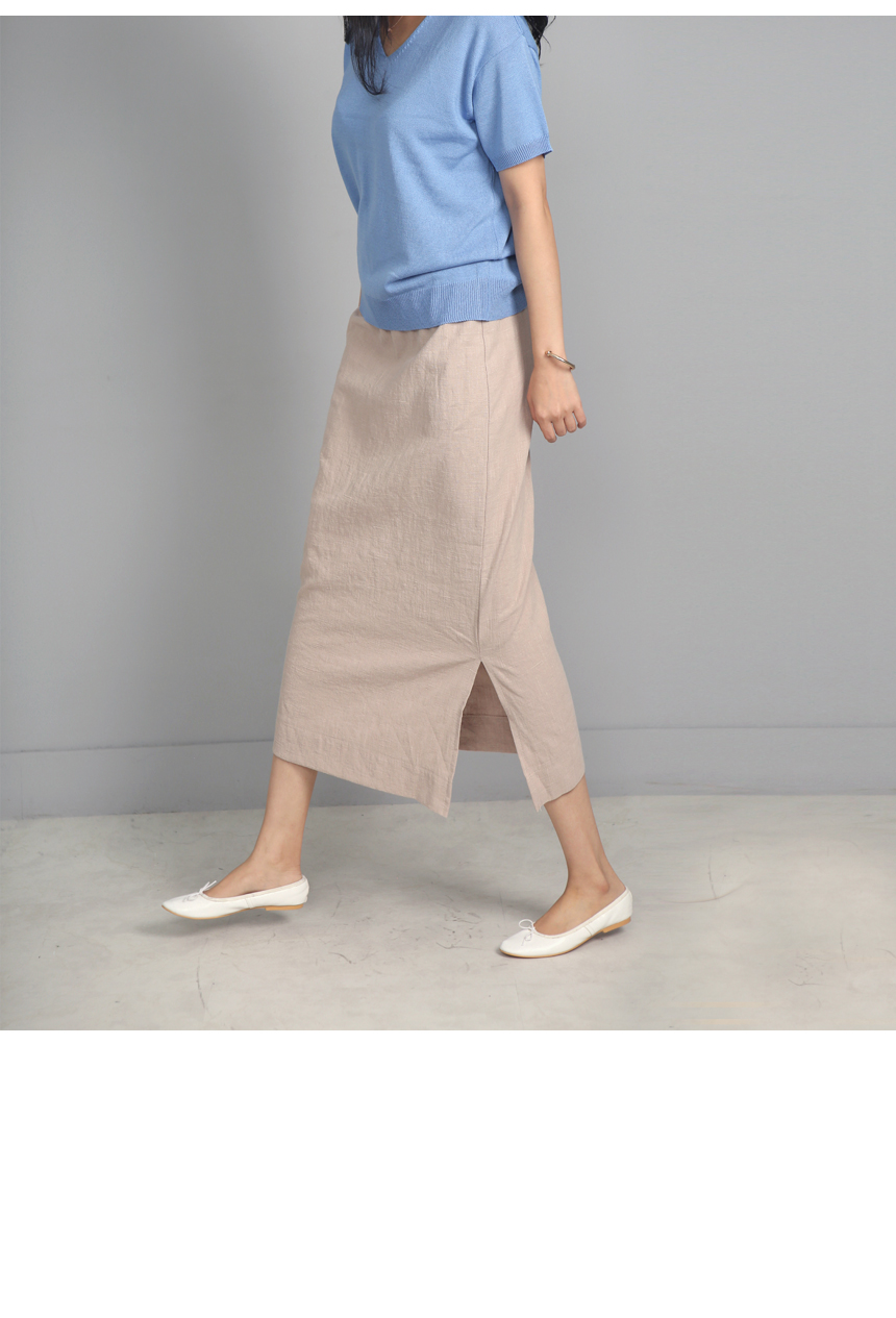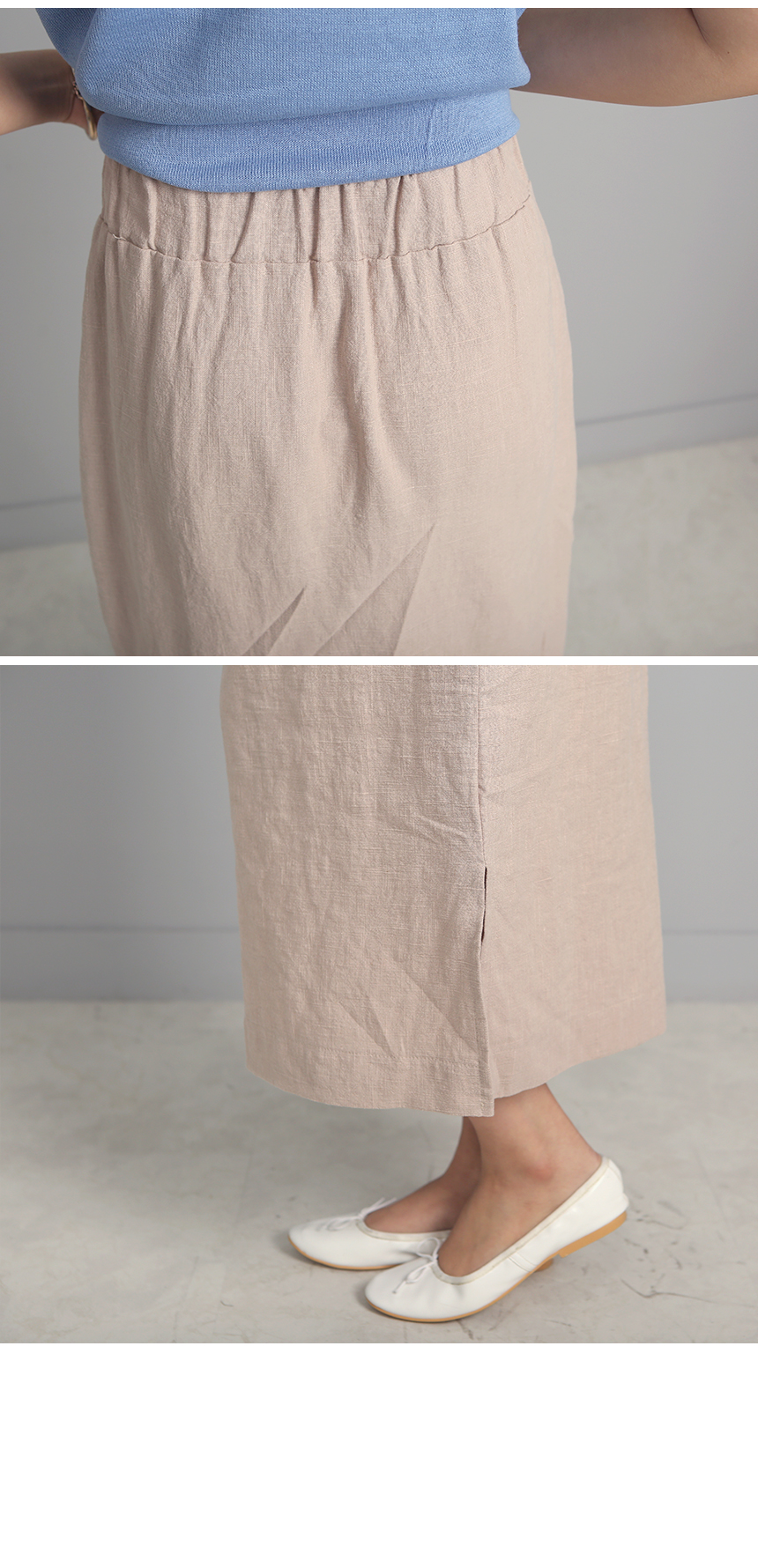 자연스러운 질감이 매력적인 마 100% 소재로 심플한 일자 핏의 롱한 길이감의 스커트에요