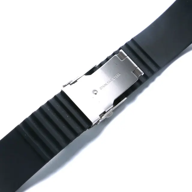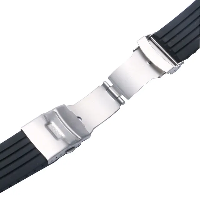 2017 새로운 도착 블랙 실리콘 배 걸쇠 안전 및 푸시 버튼 시계 스트랩 18 미리메터 20 미리메터 22 미리메터 24 미리메터 줄