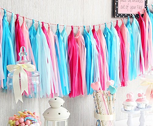 - ❤This tissue paper tassel garland banner kit will be awesome with sparkling sequin table runners, happy birthday banners, tissue paper pom pom flower balls or balloon tail garland kits.