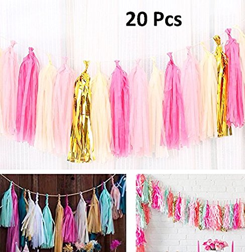 20Pcs Tissue Paper Tassels Party Garland Banner for Wedding, Baby Shower, Birthdays, Gold Garland Bunting Pom Pom, Bachelorette Party Decorations...