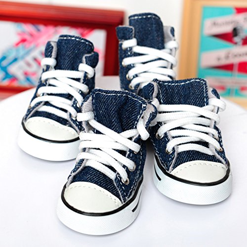 -. Title : Pet Dog Shoes, RilexAwhile Cowboy Nonslip Puppy Sport Denim Blue Casual Dog Canvas Sneaker Paw Protector for Small Dogs Chihuahua Yorkie Doggies,4 pcs