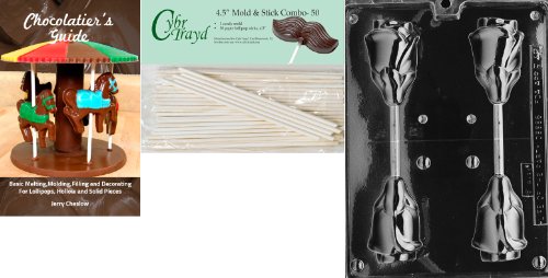 Cybrtrayd 'Large 3D Rose Lolly' Fruits and Vegetables Chocolate Candy Mold with 50 4.5-Inch Lollipop Sticks and Chocolatier's Guide