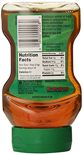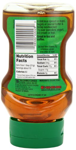 -. Binding : Grocery -. Brand : Billy Bee -. Department : mens -. EAN : 0058500000280 -. Feature : 100% pure natural honey / USDA Certified Organic / Rich in flavor and pure in color / Upside down squeeze bottle with no mess cap keeps your kitchen counter clean / Great in tea and coffee -. Label : Billy Bee -. Manufacturer : Billy Bee -. MPN : 0888701 -. NumberOfItems : 1 -. PackageQuantity : 1 -. PartNumber : 0888701 -. ProductGroup : Grocery -. ProductTypeName : GROCERY -. PublicationDate : 2013-02-13 -. Publisher : Billy Bee -. Size : 13 Ounce -. Studio : Billy Bee -. Title : Billy Bee 100% Pure Organic Liquid Honey, 13 oz. Upside Down Squeeze Bottle -. UPC : 058500000280