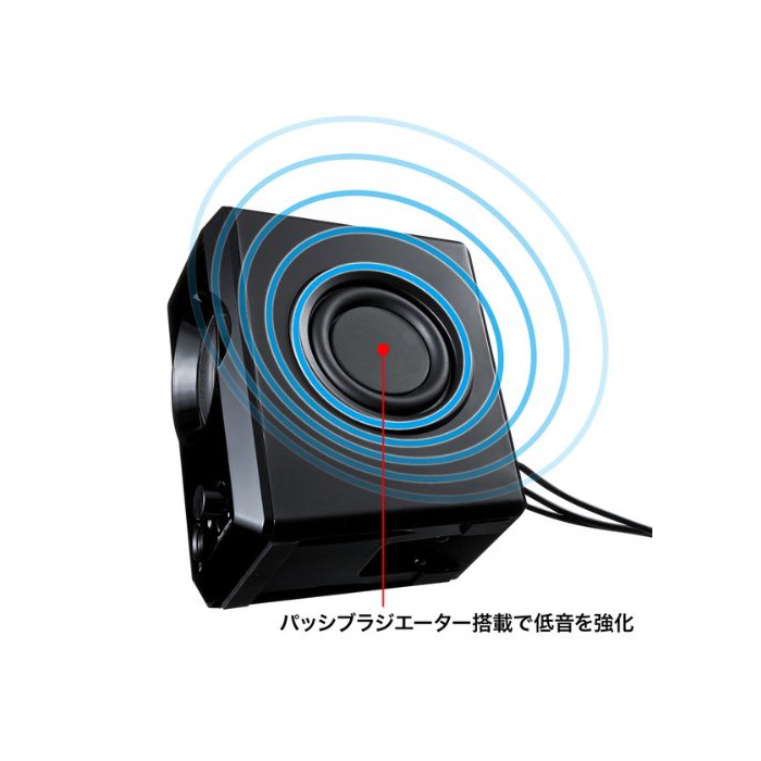 passive 라지에타 유닛을 탑재하여 2ch스피커란 생각할 수 없는 풍부한 저음역을 재현 할 수 있는USB전원 스피커.■실용 최대 출력:6W(3W+3W)■주파수 특성: 130Hz~20000Hz■스피커 형식:밀폐회식 풀 레인지 스피커 시스템(방자설계)■스피커 사이즈:2인치(직경 약50mm)■로드 임피던스:4Ω■입력단자:스테레오 미니 플러그(3.5mm)■전원:USB포토 보다 공급(DC5V/500mA)■사이즈:W71×D130×H139.6mm■중량: 약1110g■케이블장:스피커