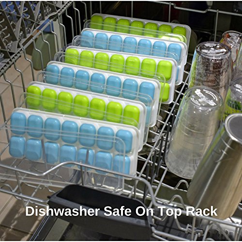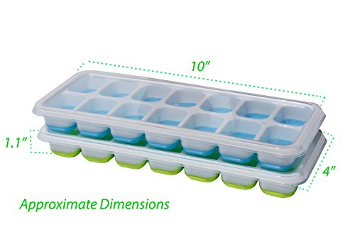 Ice Cube Trays with Lids BPA Free Silicone and Plastic Construction 4Pk Also Great For Baby Food Freezer Storage 14 cubes per tray 56 Cubes Total (4, Green)