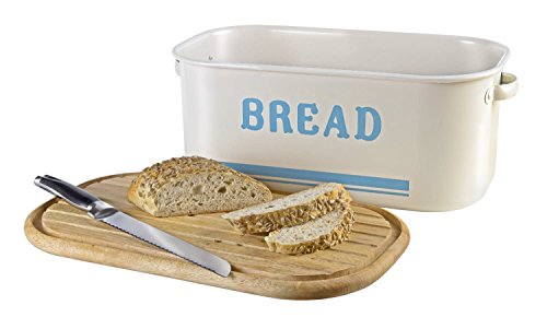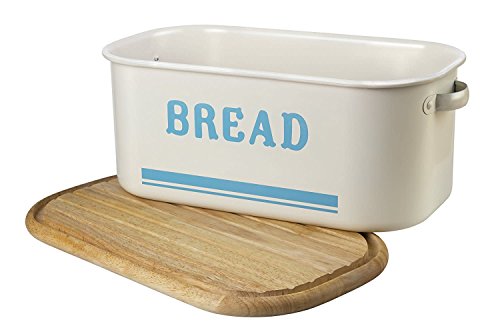 Studio : Jamie Oliver Publisher : Jamie Oliver Binding : Kitchen Product Description Bring retro design and modern functionality to your kitchen with the vintage inspired beautiful bread tin from Jamie Oliver and dark brands. This two-in-one bread bin and board features a wooden lid that also doubles as a breadboard for slicing and serving your loaf. The lid sits securely on the bin thanks to a groove that also catches crumbs when slicing. The bin itself is drawn from a single piece of carbon steel, creating a robust form that alleviates the dirt traps and sharp corners typically found on pressed steel storage products. The bin is finished in a classic Sky Blue and cream paint scheme with stainless steel detailing. The entire Jamie Oliver storage collection comprises a variety of storage jars, a cake tin set and a utensil pot. Jamie Oliver is a phenomenon in the world of food. As one of the worlds best-loved chefs he continues to enjoy huge success on television and in publishing, with 12 television shows airing in over 100 countries and in excess of 23 million books sold to date. 0