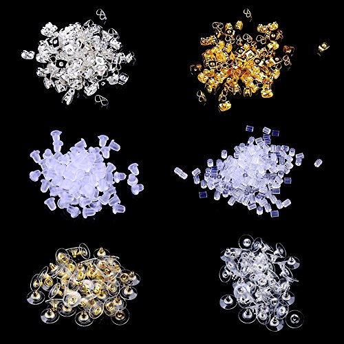 600 pcs Earring Backs,Earring backings Supla 6 Styles Earring Back Clips bullet shape earring backs Butterfly Metal Rubber Plastic Secure Earring Backs for Safety