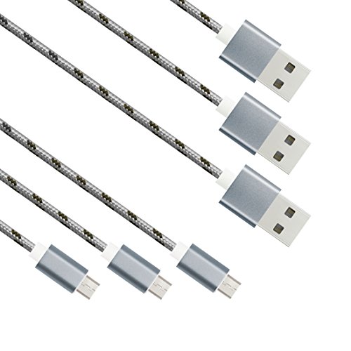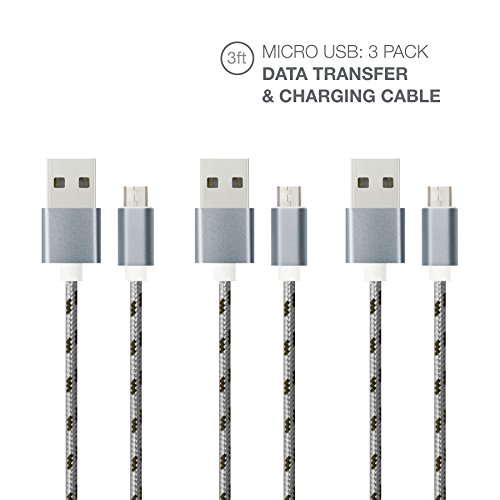 ExpertPower [3 Pack] Braided Micro USB Cable - Sync and Charge for Android Devices, Samsung, Nokia, Lumia, LG, HTC ONE, eReaders and More - 3.3ft Space Grey x 3