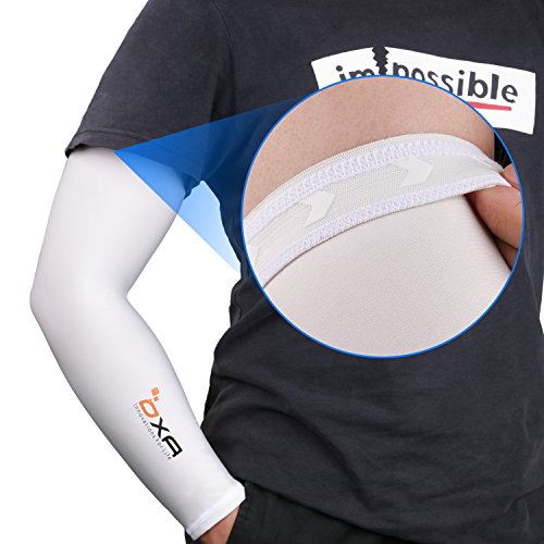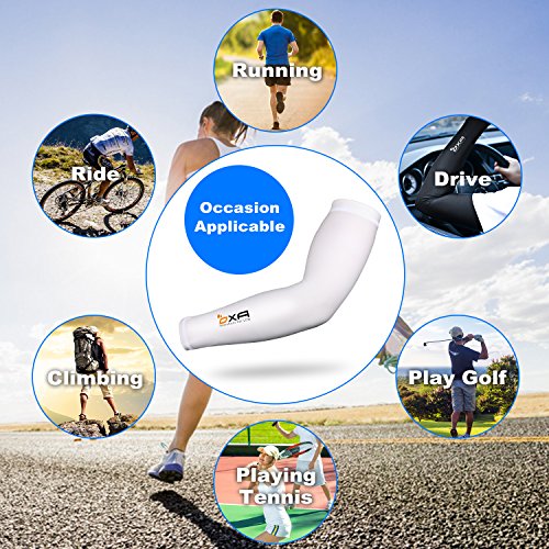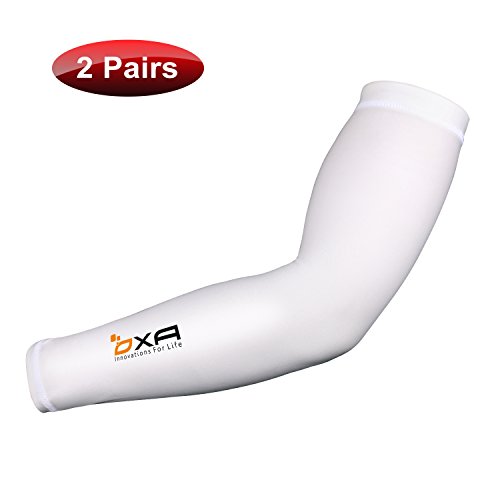 OXA Arm Sleeves UV Protection 2 Pairs, Golf Sun Protection Arm Cooling Sleeve, Sports Cooler Anti-slip Skin Protection for Biking/Cycling/Tennis/Hiking and Outdoor Fitness Activities (White, XL)
