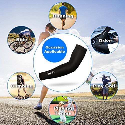 OXA Arm Sleeves UV Protection 2 Pairs, Golf Sun Protection Arm Cooling Sleeve, Sports Cooler Anti-slip Skin Protection for Biking/Cycling/Tennis/Hiking and Outdoor Fitness Activities (Black, XL)