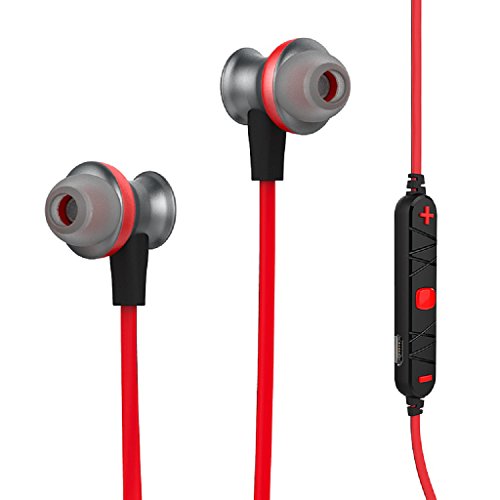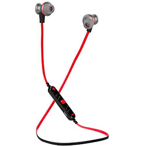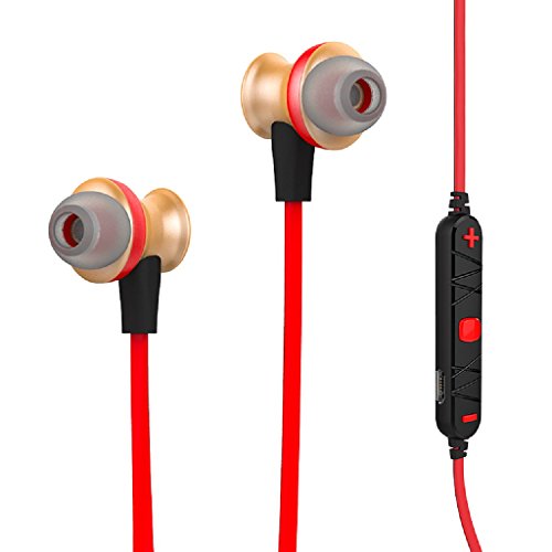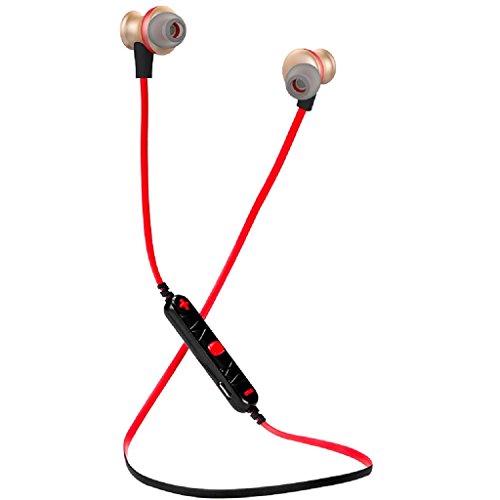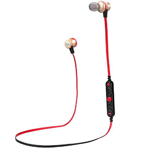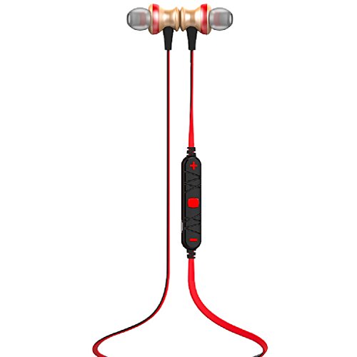 -. Feature : Bluetooth 4.0 technology makes it easy and fast to pair with Bluetooth-enabled-devices. Adopt the advanced technology of multipoint connection, support you to connect with two phones at the same time,Easy to control the music play and answer the phone. / Built-in HD Microphone with CVC6.0 noise cancellation,ensure Hi-Fi Stereo Music Sound and Strong Signal. Let you get high quality and clear voice even in noisy environment like inside a gym and running/cycling on the road. / Ergonomic design provide comfort and also stability so the headphones stay in place no matter the levels of exercise, and it is sweat and water resistance, so you can enjoy your music for long time. / Aluminum alloy material give you a fine metal texture. Reduce the sound refraction, and gives you a smooth listening experience. / Magnet attraction design, hanging like a necklace around your neck, and you can adjust the length of the ropes to your liking.