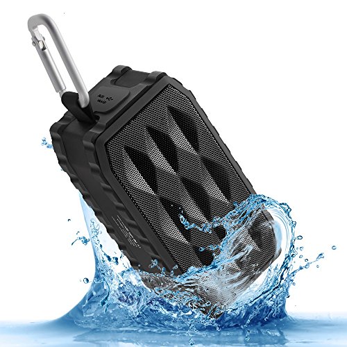 -. Feature : Rated IPX7 water resistance Level: Large area of Sealed TPU Silicone Cover Design ensures great Splashproof, Shockproof and Dustproof function, so it can be used outdoor and shower.Besides, with the portable design and 10.7 ounces weight, you can take the speaker with you wherever you go / Two total 8W drivers: this speaker with two total 8W drivers provides an excellent stereo and distortion-free sound. A built-in massive passive radiator could provide strong bass without distortion even at highest volume / Bluetooth 4.0 Technology:Connect your device very fast and the connection quicker and more stable, consume less energy and deliver crystal clear sound. / Built-in rechargeable 2000 Ah battery: supports up to 8 hours playing time with a single charge. Recharge only needs 3 hours. Don't worry when the battery is low or your device don't have Bluetooth function, you can play audio from other devices by a 3.5mm audio cable or just play a Micro SD card / Hands-free calls: built-in microphone for hands-free phone calls from smartphones and iPhones and the speaker supports a bidirectional conversation
