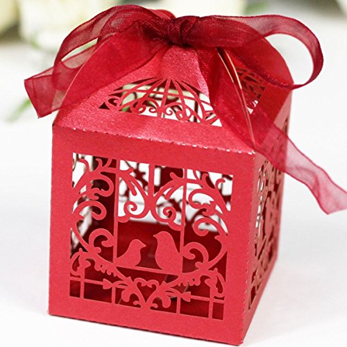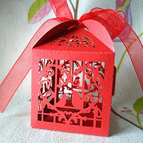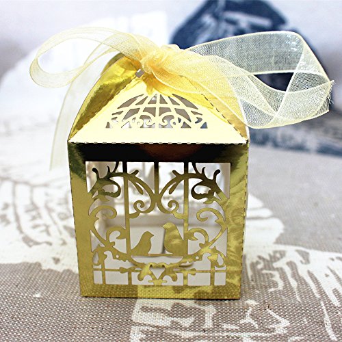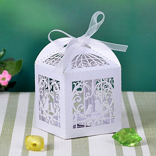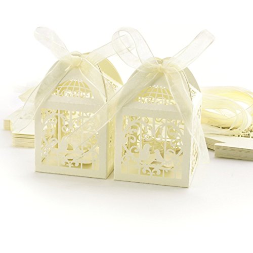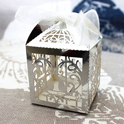 -. Title : Gospire 50pcs Deluxe Party Wedding Favor Super Gift Laser Cut Pearl Paper Ribbon Candy Boxes Gift Box Bombonera Classical Bird Style
