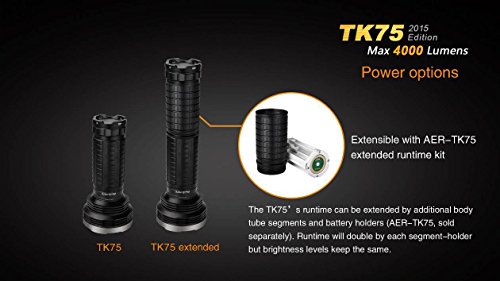 FENIX TK75 4000 Lumen 2015 Edition 4 CREE XM-L2 U2 LED Flashlight with Four Fenix ARB-L2M 18650 Batteries and eight EdisonBright CR123A lithium batteries bundle