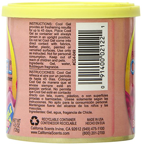 ReleaseDate : 2014-08-22 Studio : California Scents Publisher : California Scents Binding : Health and Beauty Product Description Cool gel offers a very cool alternative to freshening any area and is ideal for use in any car, RV, boat, home or office. Just pop the top and instantly your car's interior is filled with the pleasant fragrance of California Scents. 0