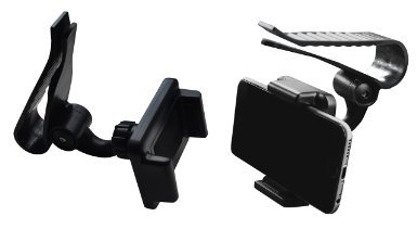 The frameless universal car mount on Sun-shield Board for Apple iPhone, smartphones & cell phones / GPS / PDA / MP3 Players and other devices with a maximum width of 85 mm.