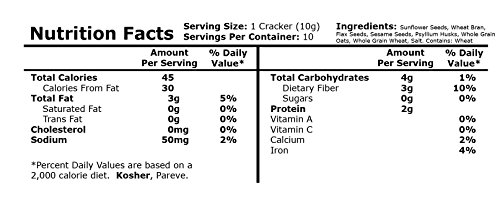 -. Feature : High in fiber with over 2 grams of fiber per cracker / 45 calories per cracker / non-GMO product of Norway / GG Scandinavian Thins Crispbread / Contains sunflower seeds, flax seeds and sesame seeds