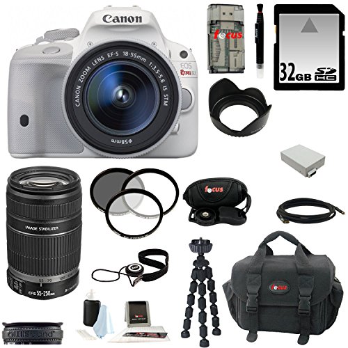 Bundle Includes: • Canon EOS Rebel SL1 with EF-S 18-55mm IS STM Lens (White)